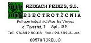 Electrotècnia REIXACH FEIXES, S.L. es una empresa familiar joven creada el uno de Enero del año 1997, situada en el Polígono Industrial Mas les Vinyes de Torellò, sin embargo, esta empresa es fruto de la separación de otra que por aquellas fechas ya llevaba más de 25 años d’e experiencia tanto en el mundo de las instalaciones eléctricas en general, com en el proceso de automatitzación y mantenimiento eléctrico de la industria.